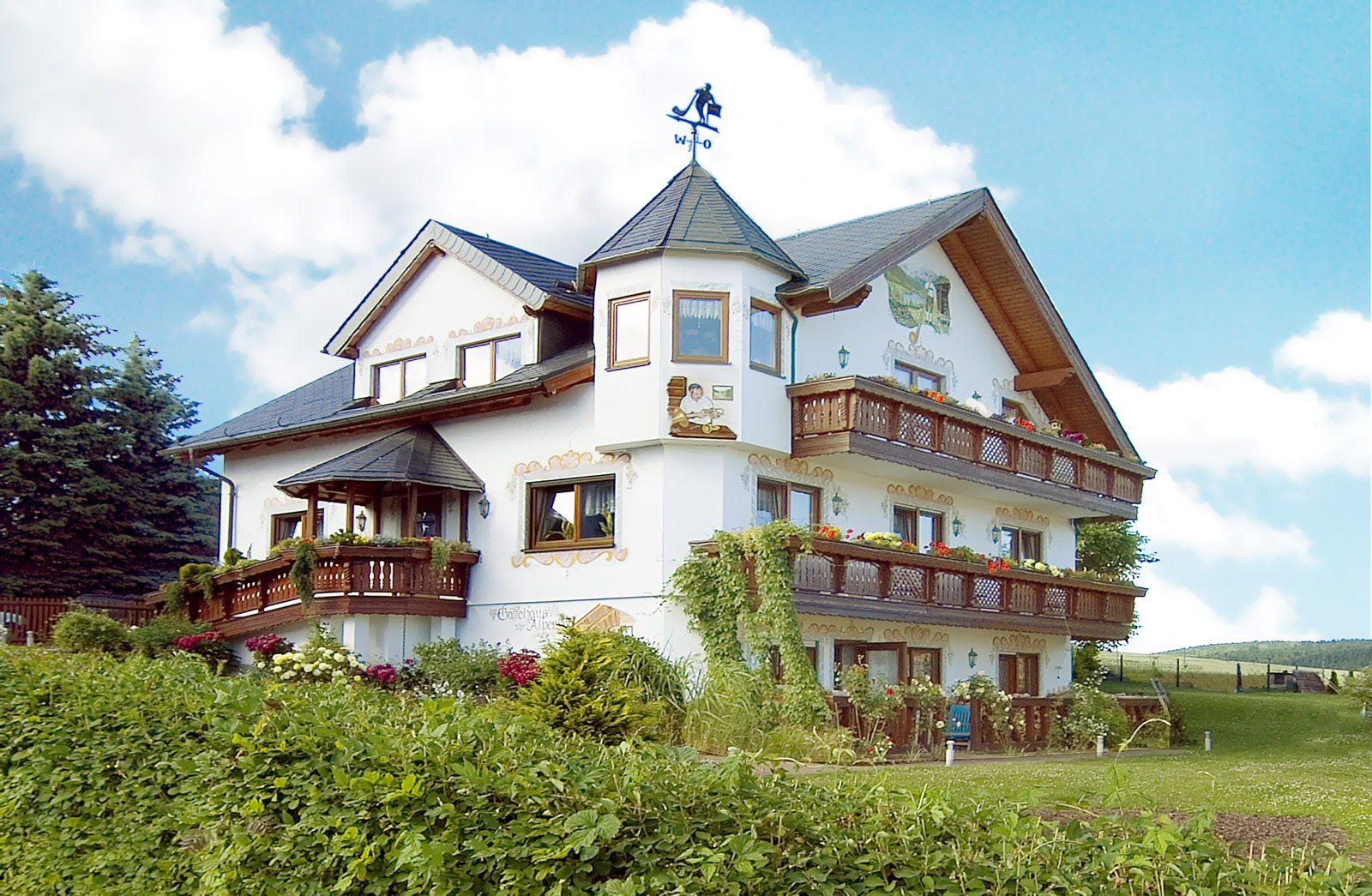 Das Gästehaus - alle Zimmer mit Balkon oder Terasse.