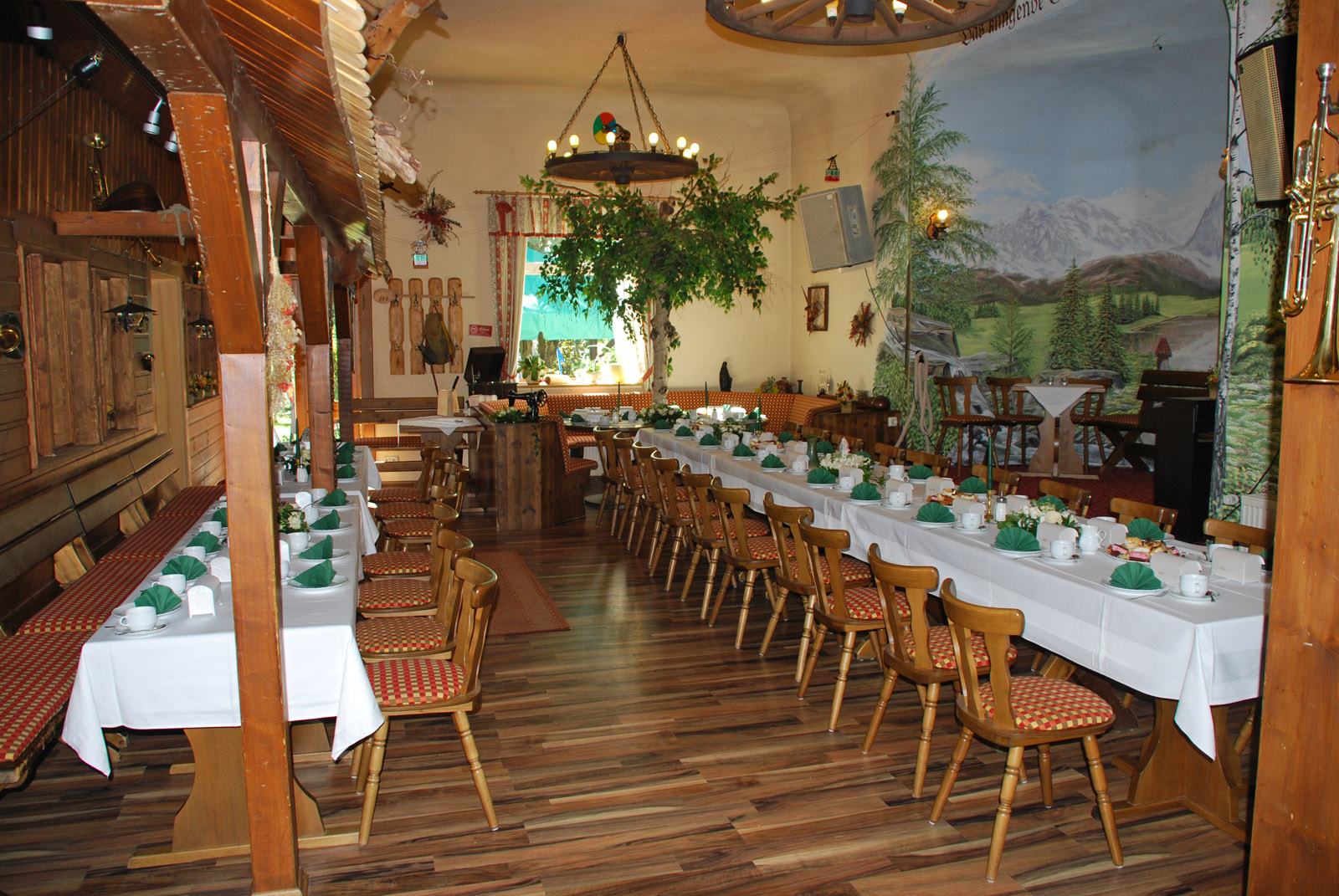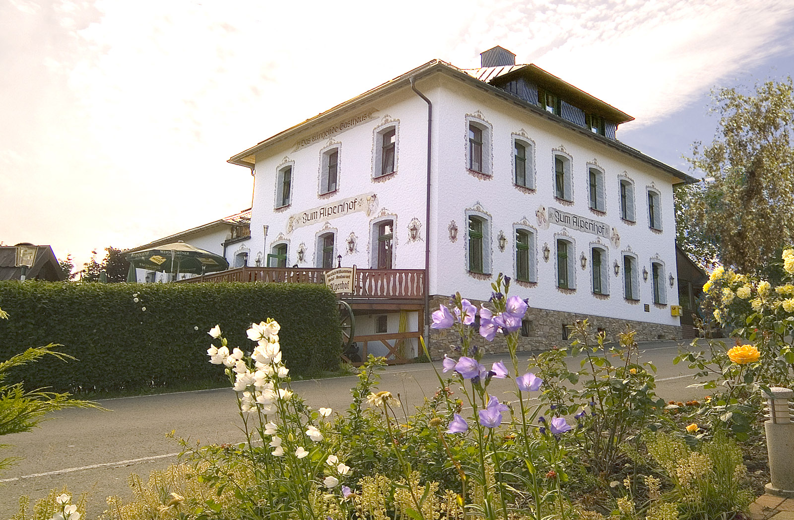 Das Haupthaus mit Restaurant, Saal angrenzenden Biergarten